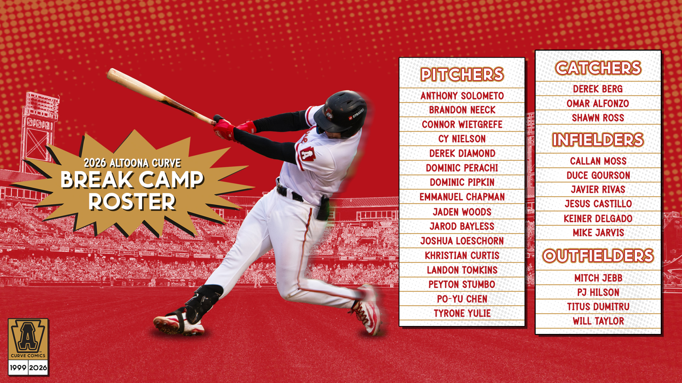CURVE, PA – The Altoona Curve are pleased to reveal the 2026 Break Camp roster of players reporting to Altoona to begin the season. The unofficial roster includes 29 total players, 20 of whom have played for Altoona previously.