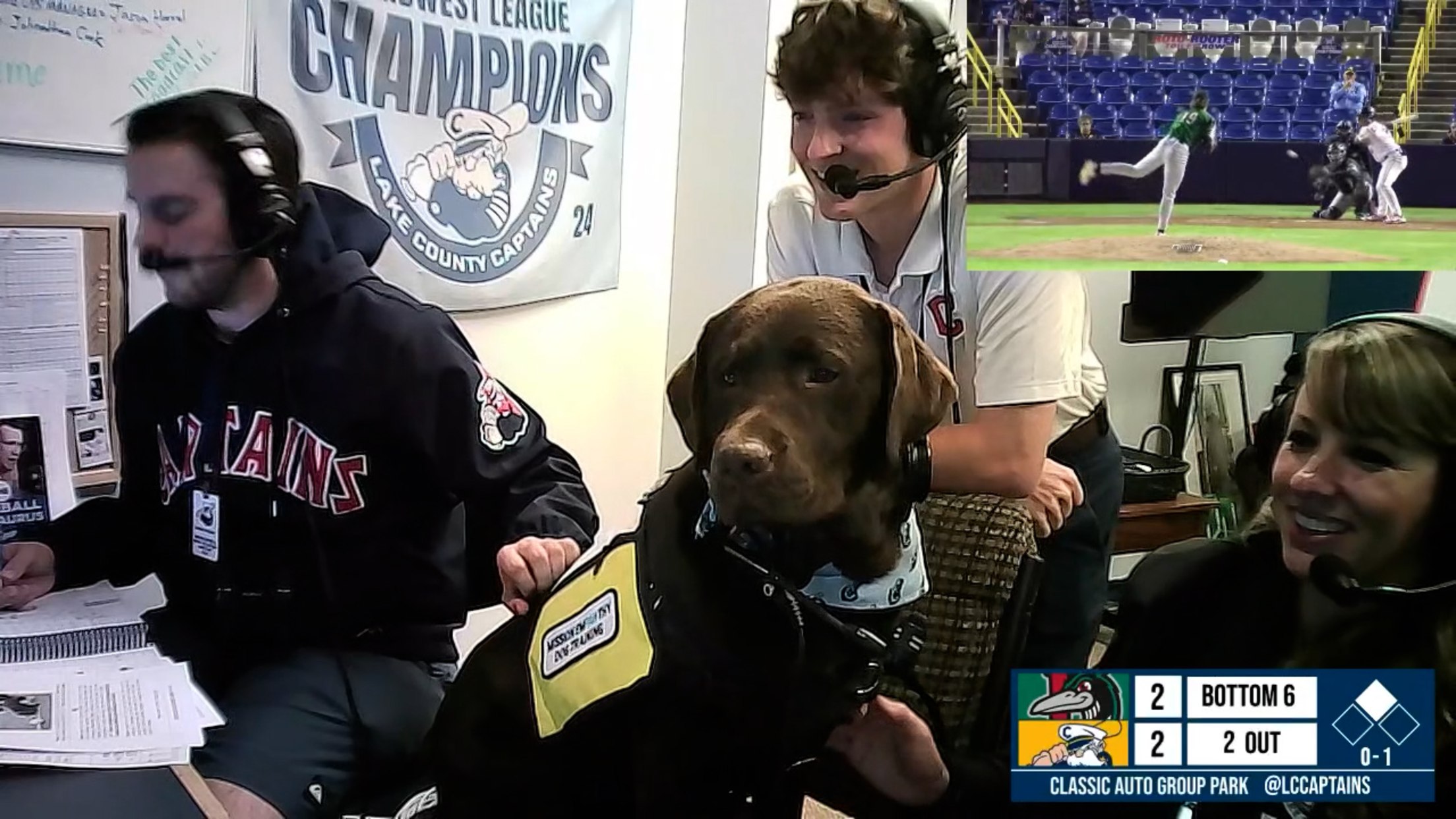 Mokoro, the Lake County bat dog, suited up for her broadcast debut at Classic Auto Group Park during the Captains' final Dawg Night of the season. In the bottom of the sixth inning of the Captains'